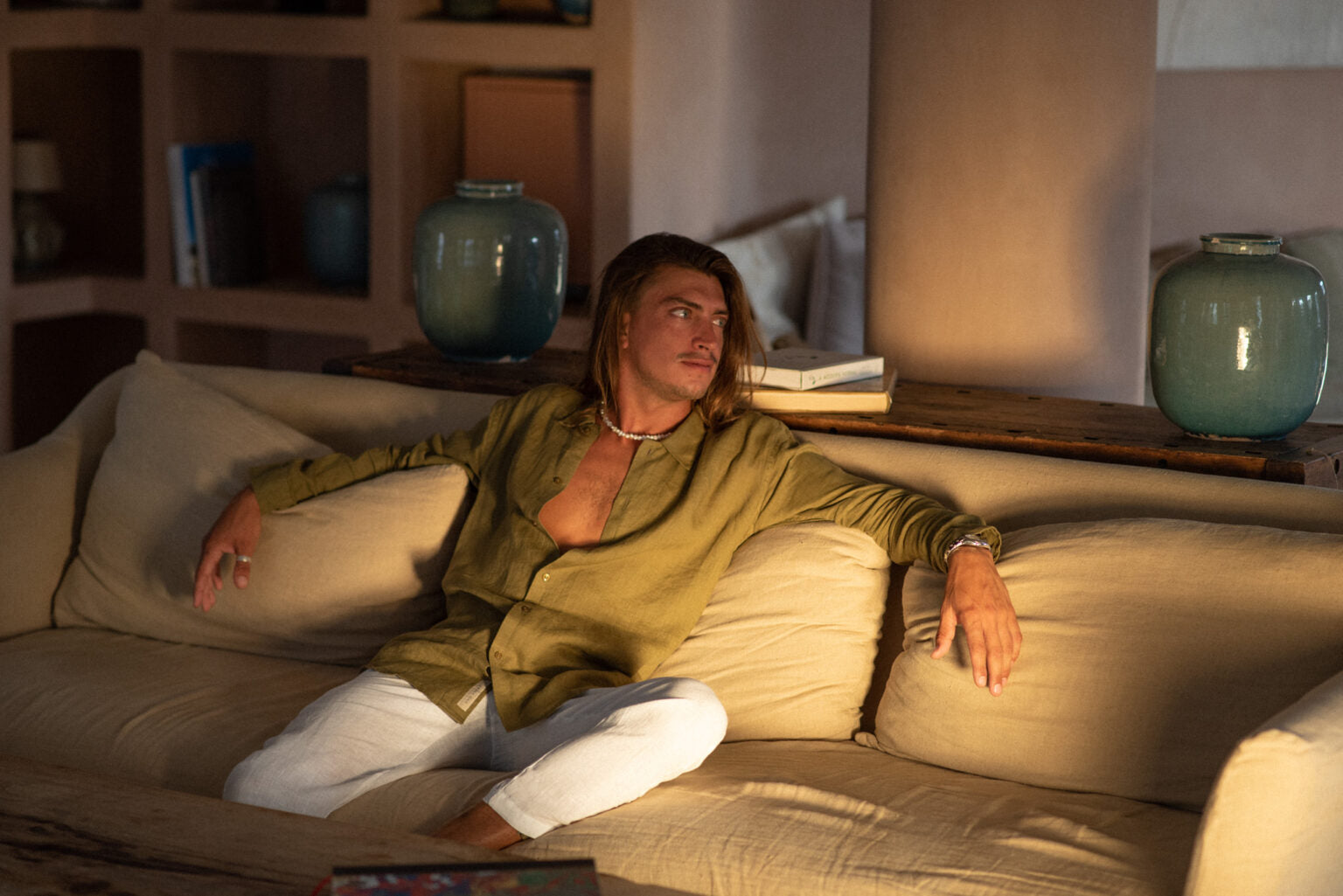 100% Linen Long Trousers - Olive